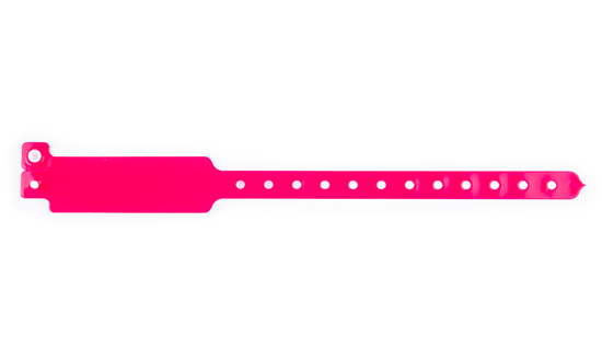 Identifikačný náramok rôznych farieb vyrobený z mäkkého vinylu, s patentovým uzáverom a rozšírenou plochou.